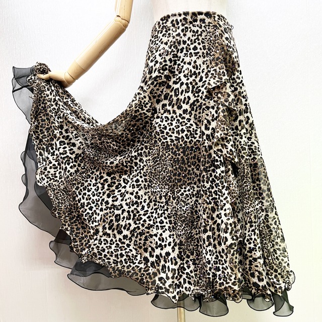 社交ダンス スカート レオパ柄 裾オーガンジー スパンコール