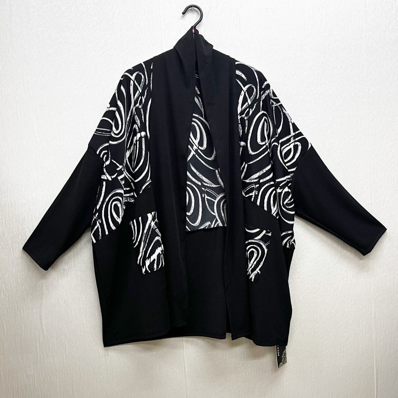 新品 Hesse プリント切り替えカーディガン モノトーン柄 ドルマン