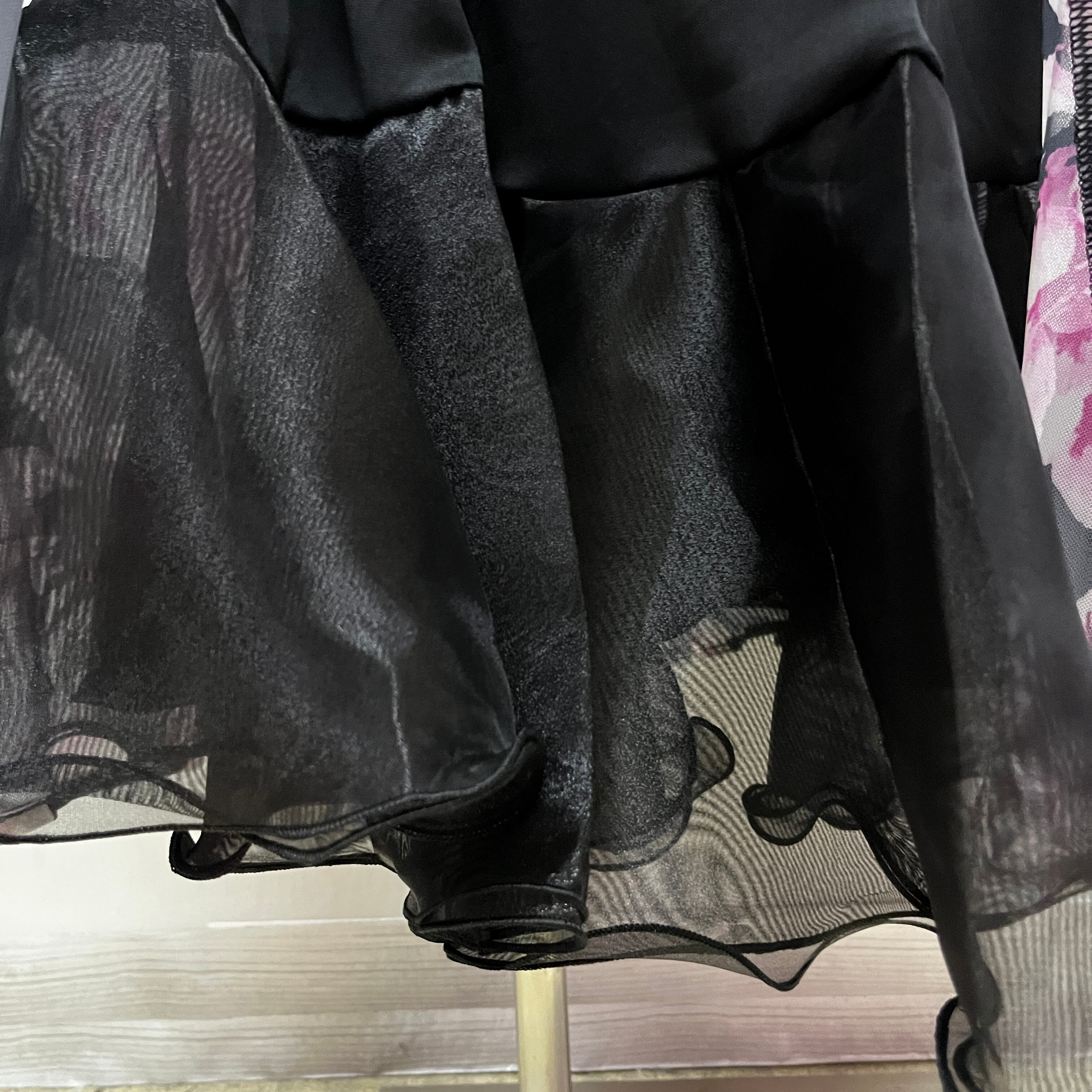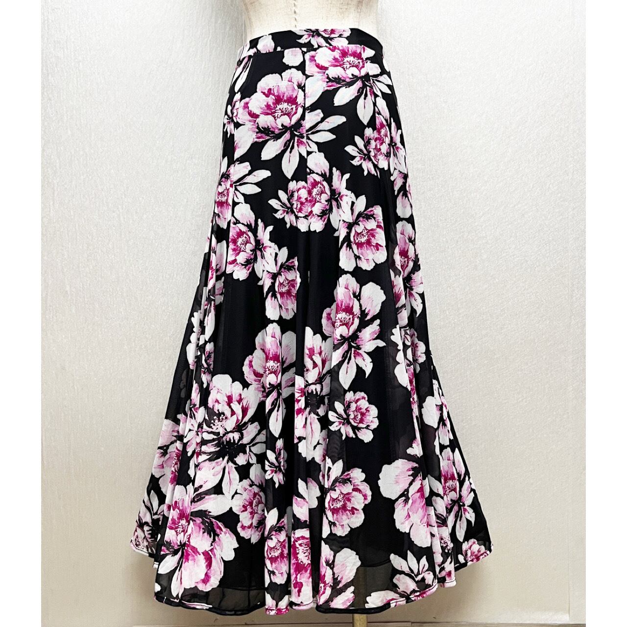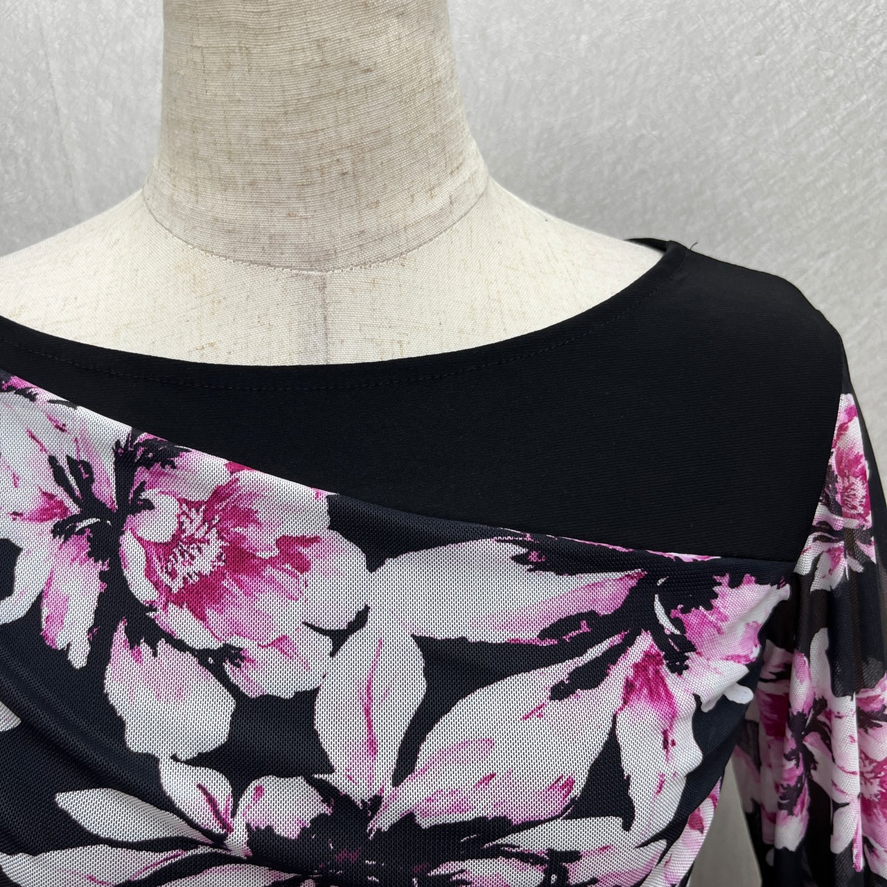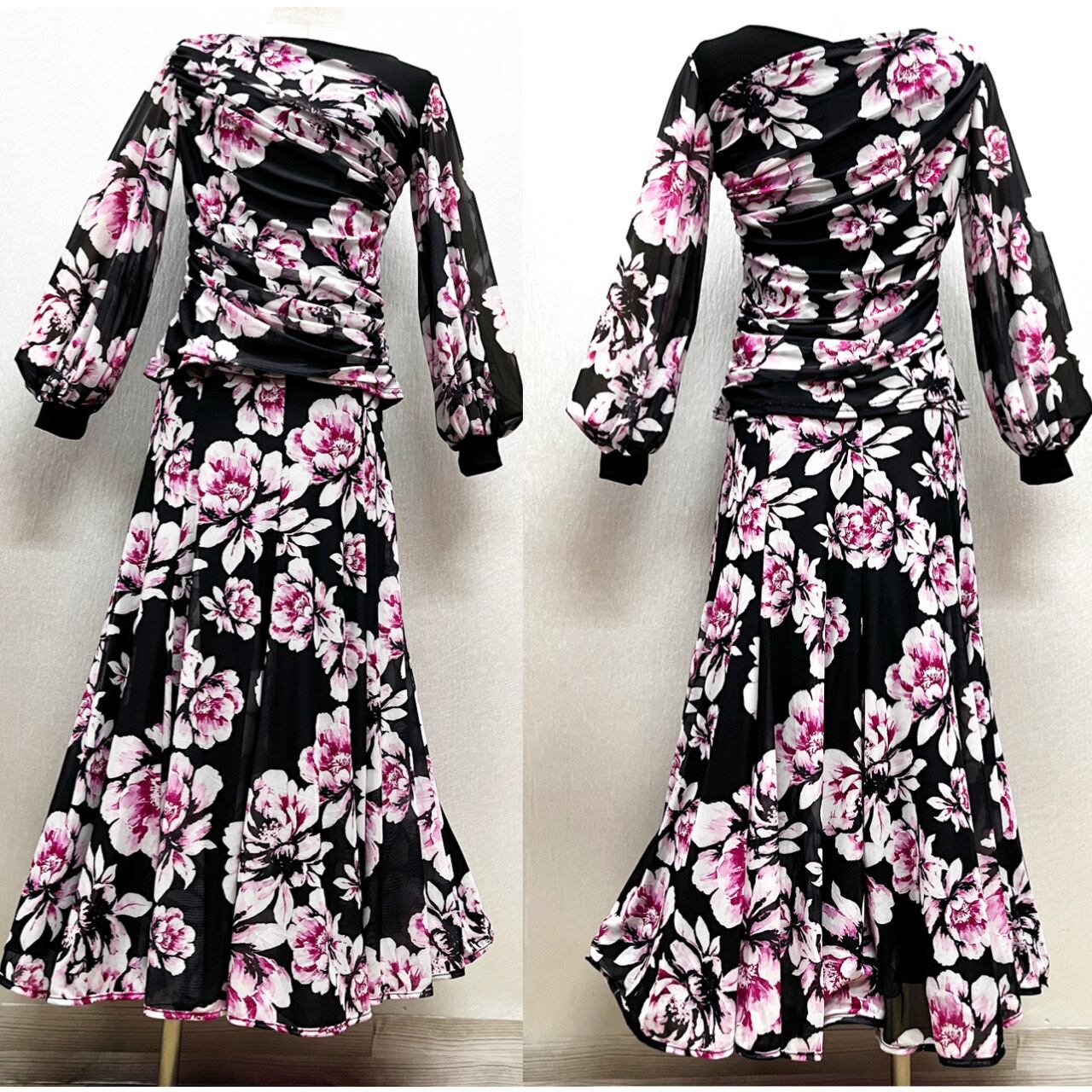 新品 社交ダンス セットアップ 黒メッシュ地に白ピンク花柄