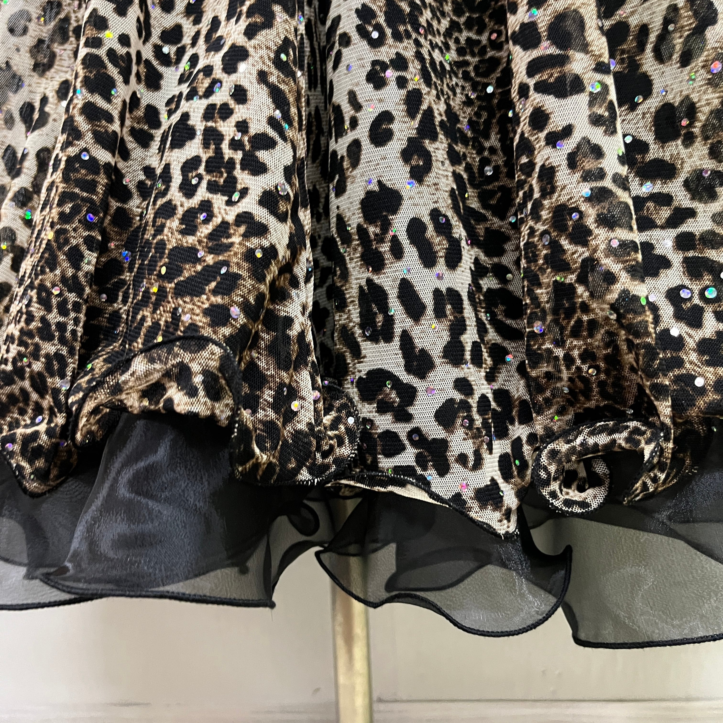 社交ダンス スカート レオパ柄 裾オーガンジー スパンコール