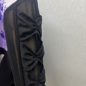 袖に切り込みが入っていますが、中に黒いチュールが貼ってあるので肌は透けるだけです。