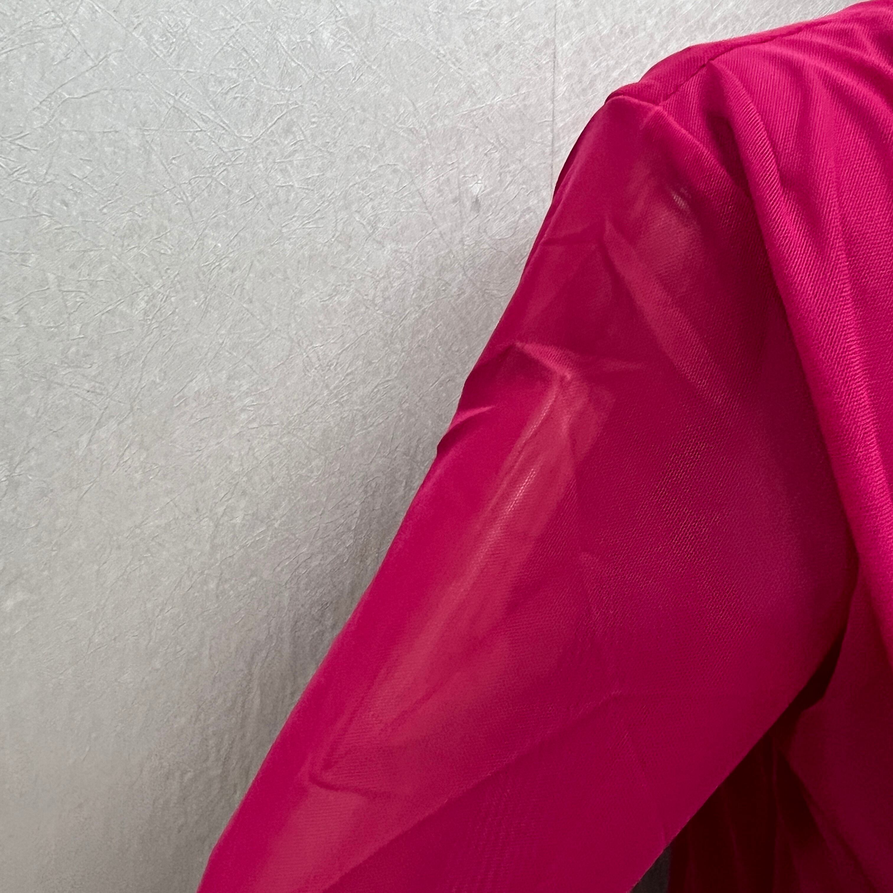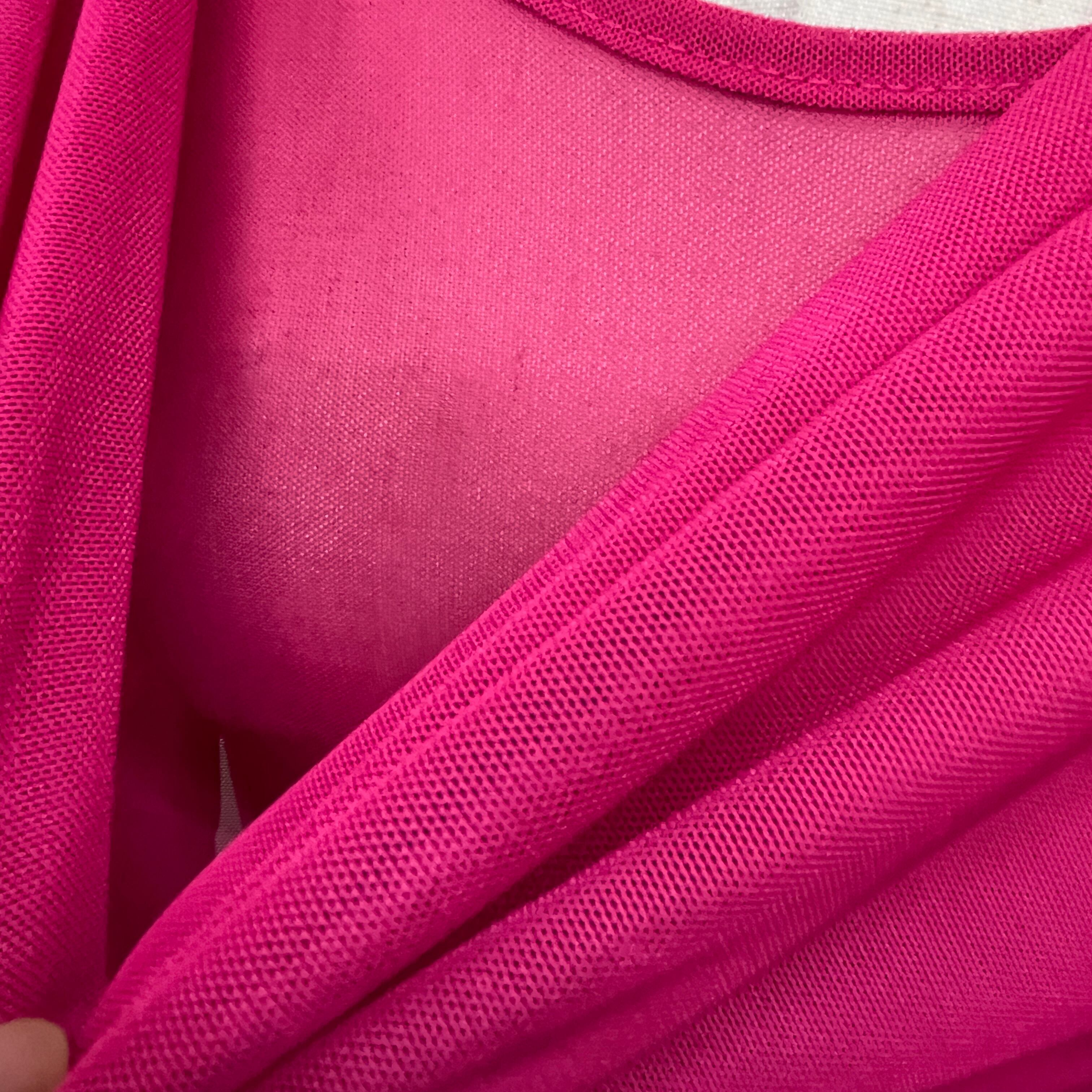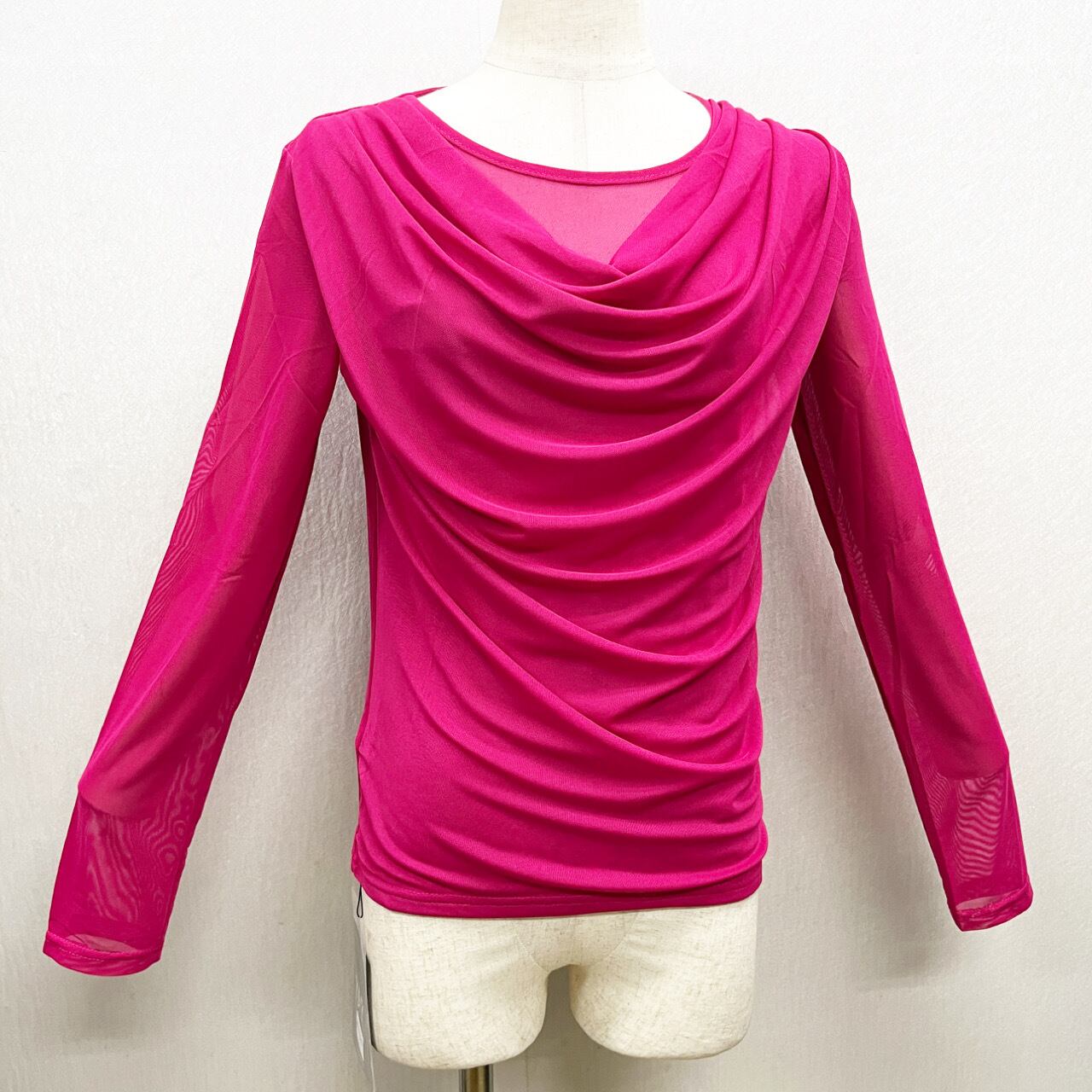色はキレイなローズピンク。胸元のドレープが素敵です。ドレープの内側の見えない所は切りっぱなしになっていますのでご了承ください。